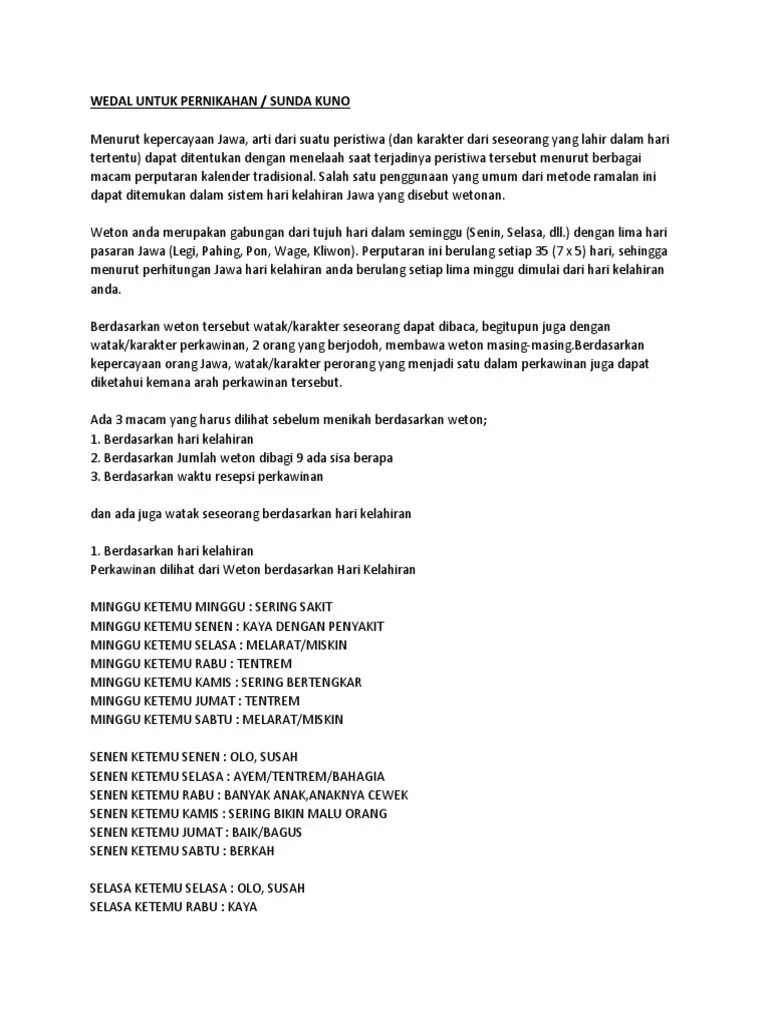 Jika tidak ada, maka jodoh selanjutnya adalah kelahiran neptu senin wage, jum'at wage, selasa pon, .